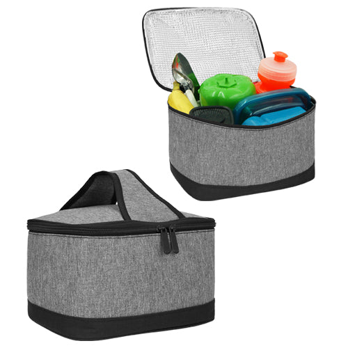 Lonchera de poliéster con interior térmico y asa.. Medida producto alto: 14 . Medida producto ancho: 24 . Area impresion: 10 x 6 cm