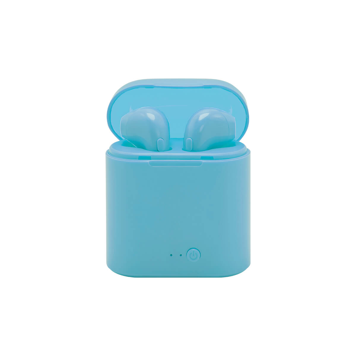 Audífonos bluetooth inalámbricos con batería recargable. Función manos libres. Reproducción de música 2 hrs aproximadamente. Incluye estuche para recargar los audífonos y cable cargador USB.. Medidas: 5.5 x 6.8 cm . Material: Plástico