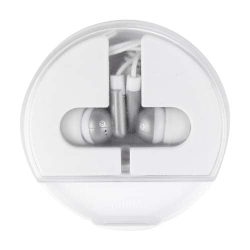 Audífonos enrollables con estuche con función de soporte para smartphone.. Medidas: 6.5 cm Diámetro . Material: Plástico