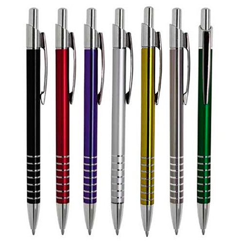 Bolígrafo de aluminio con clip metálico y mecanismo de click.. Medida producto alto: 13.8 . Medida producto ancho: 0.8 . Area impresion: 0.6 x 4.4 cm