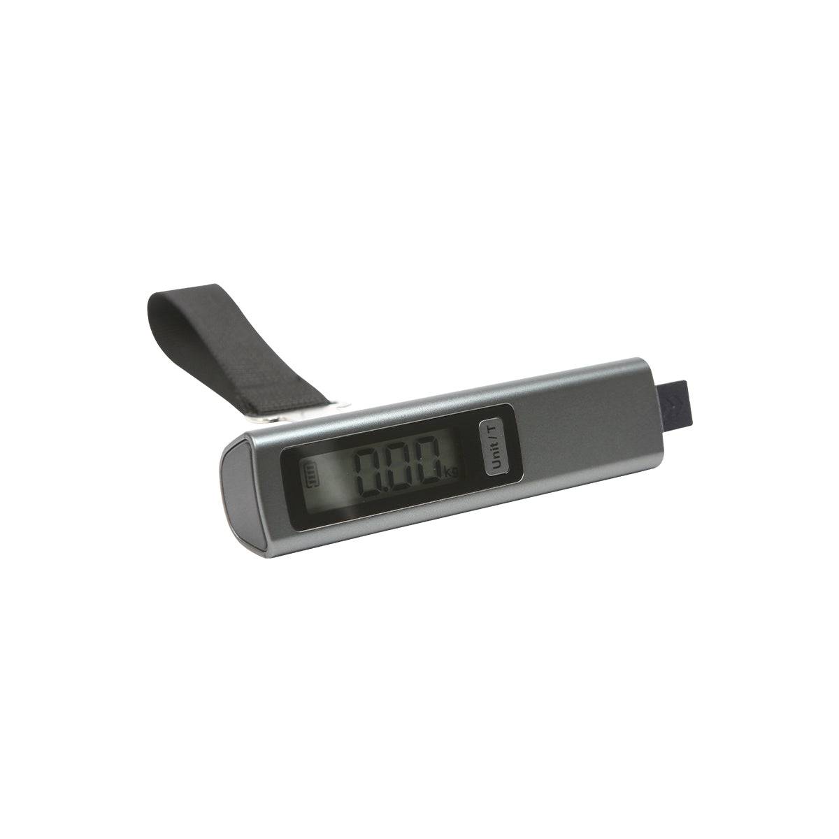 Báscula electrónica para equipaje con pantalla digital, fabricada en plástico ABS resistente y de diseño compacto. Soporta un peso máximo de 50 kg y cuenta con correa de sujeción para pesar maletas de forma segura. Incluye pantalla para lectura clara del peso y botón para cambiar unidades de medición entre kilogramos kg y libras lb. Su tamaño práctico permite llevarla fácilmente para verificar el peso del equipaje antes de viajar. Tecnología sin pilas.
