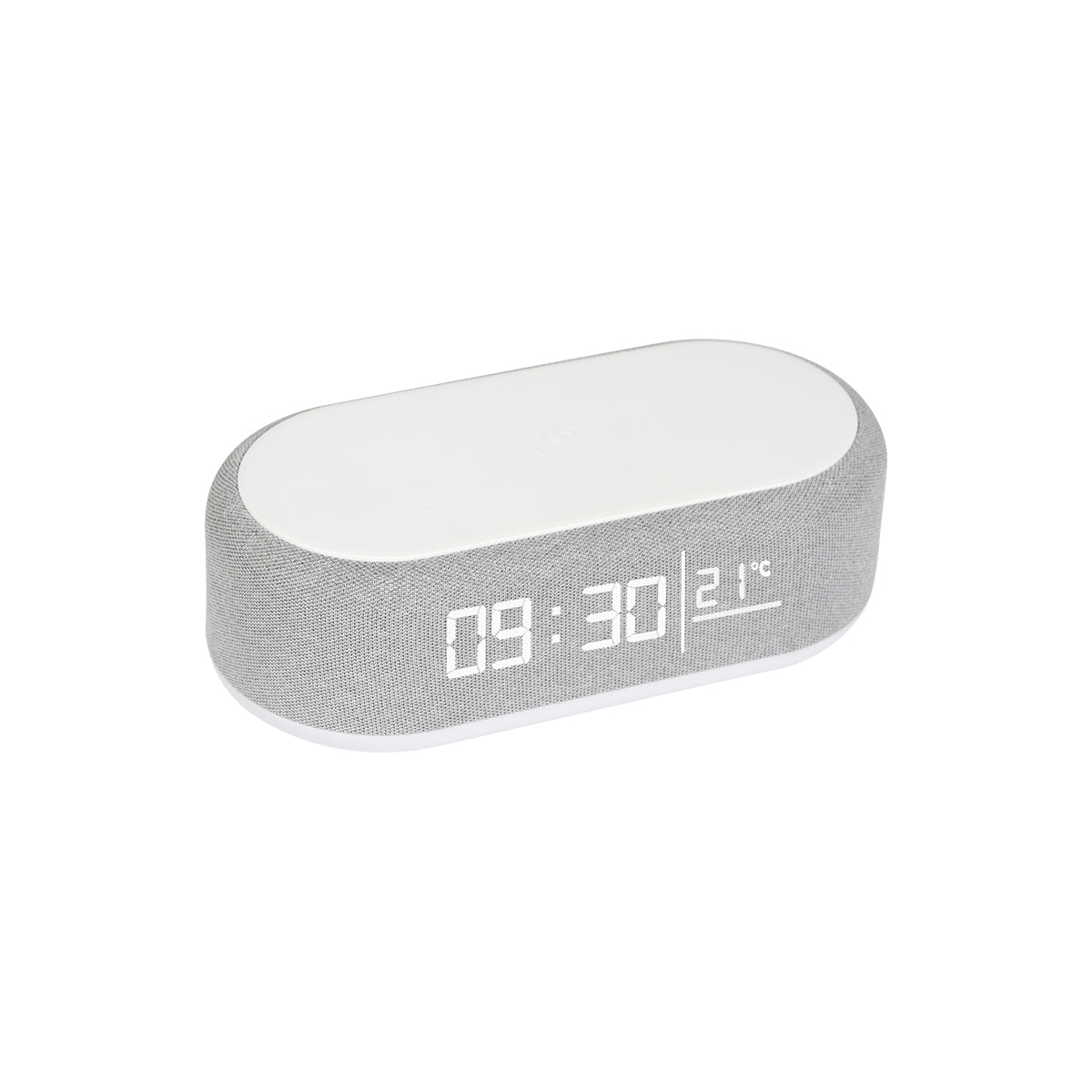 Base de carga inalámbrica QI con función de reloj despertador, cuenta con medidor de temperatura, indicador de hora, lampara 3 niveles de luz. Diseño independiente, rendimiento estable y bajo consumo de energía contiene cable de carga USB. Incluye caja.