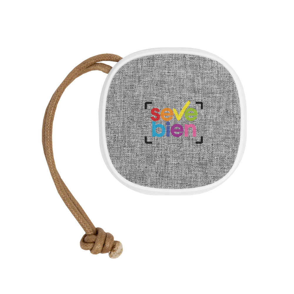 9 x 9 x 4,4. Plástico. Bocina bluetooth cubierto en tela. En la parte inferior engomado antideslizante con botones para encender o apagar, playpausa y responder llamadas. Botón de retroceso y avance, este último, si se mantiene presionado durante unos segundos pasa al siguiente sonido, estos mismos botones permiten aumentar o disminuir el volumen. Puerto de carga USB-C. Incluye cable. Lazo de tela color marrón que permite colgarlo. Duración de la batería 8 - 12 hs aprox. Presentación en caja de regalo. Potencia: 3 Watts x 1 Versión Bluetooth: 4.2 Capacidad Batería: 1200 mAh Alcance: 10 mts. aprox. Medidas Ancho: 28.0 . Medidas Alto: 28.5 . Medidas Profundidad: 45.0