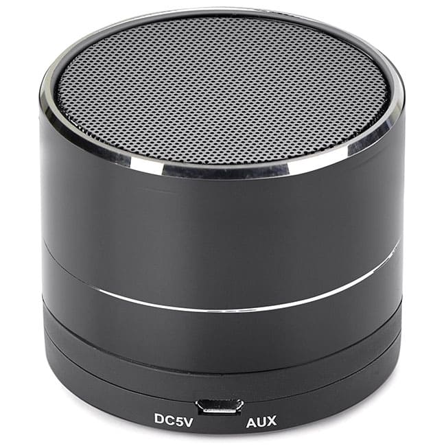 Bocina Bluetooth Lussac. Bluetooth versión 4.1. Rango:10 m. Play time : 4-5 horas. Capacidad de batería : 300mAh. Output:3W. Incluye cable.