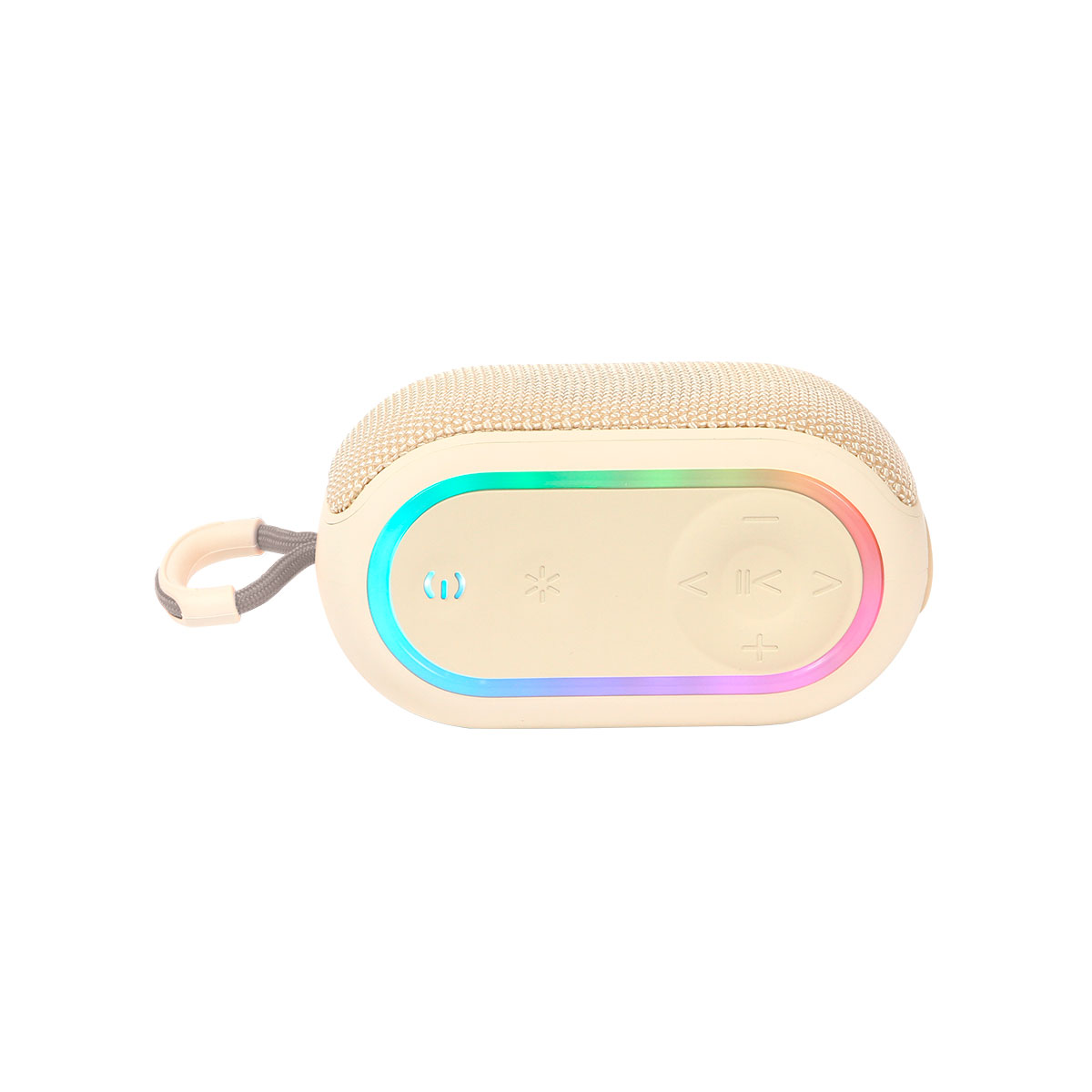 Bocina con conexión inalámbrica con radio FM. Cuenta con efectos de luces de colores, tiempo de reproducción de hasta 6 horas continuas a volumen medio, con un tiempo de carga de 2 horas con entrada tipo C, diseño adecuado para un modelo portátil. Cuenta con una entrada auxiliar, USB, TWS, tarjeta micro SD, FM, recepción de llamadas y asistente de voz. Su alcance de funcionamiento inalámbrico es de hasta 10 metros sin obstáculos. Cuenta con tecnología TWS, la cual permite emparejar dos dispositivos del mismo modelo, lo que significa que puede transmitir el canal izquierdo y el canal derecho por separado en cada dispositivo.