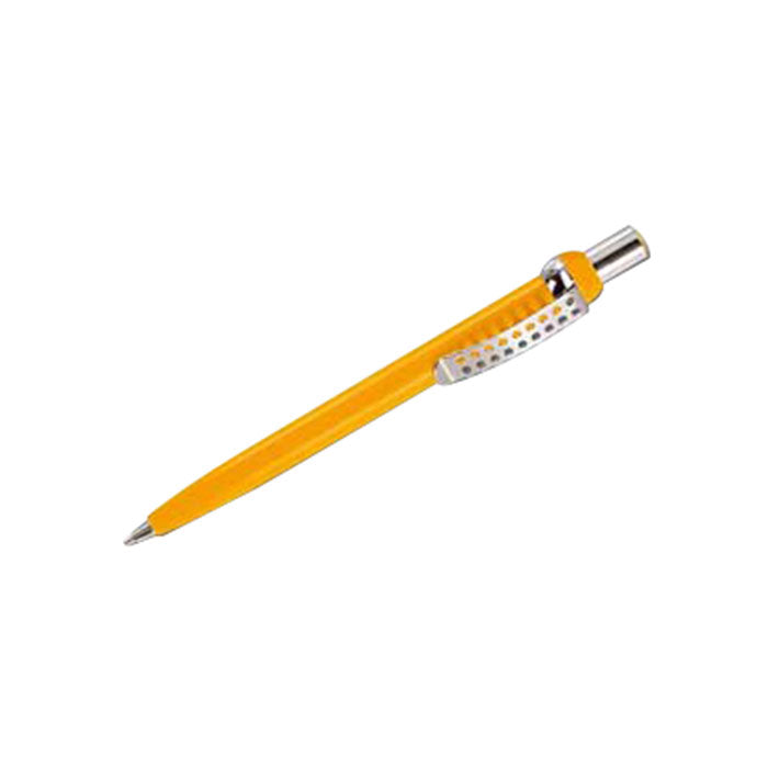 Bolígrafo fabricado de plástico de tonos sólidos, con mecanismo retráctil y de punta fina.