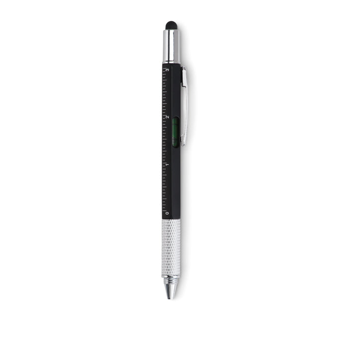 Bolígrafo fabricado de plástico de acrilonitrilo butadieno estireno con nivelador de burbuja, regla, lápiz óptico Stylus, de tinta negra, mecanismo de giro y desarmador con puntas de cabeza plana y cruz.