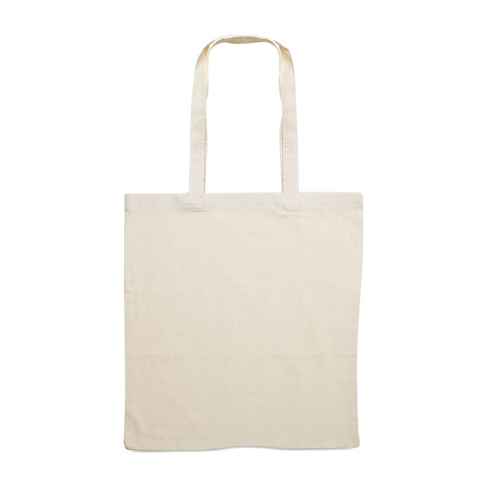 Bolsa de mano fabricada de algodón con asas largas 180 gr m². Producido según el estándar OEKO-TEX.