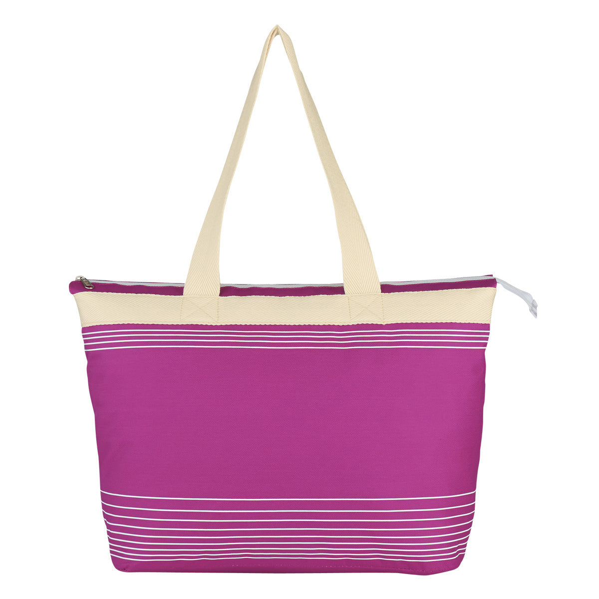 Bolsa de mano fabricada de poliéster 600D. Se cierra en la parte superior con cierre. Asas de algodón de 24.
