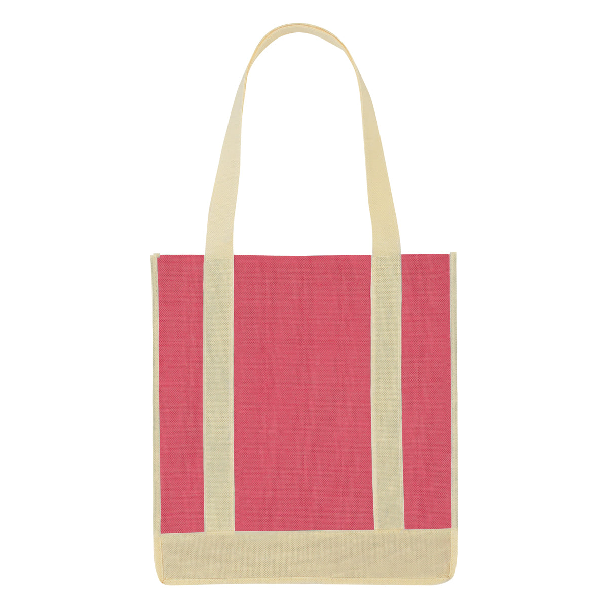 Bolsa de mano Non-Woven fabricado de polipropileno resistente al agua recubierto y no tejido de 80 gramos. Cuenta con un fuelle de 8 con inserto inferior cubierto a juego y asas de 21. Reutilizable y reciclable. Ideal para supermercados, mercados, librerías, etc.