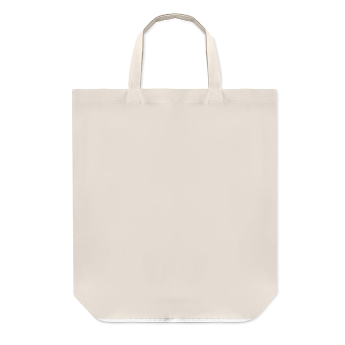 Bolsa de mano plegable para compras fabricada de algodón con asas cortas, 135 gr m². Se suministra desplegado.