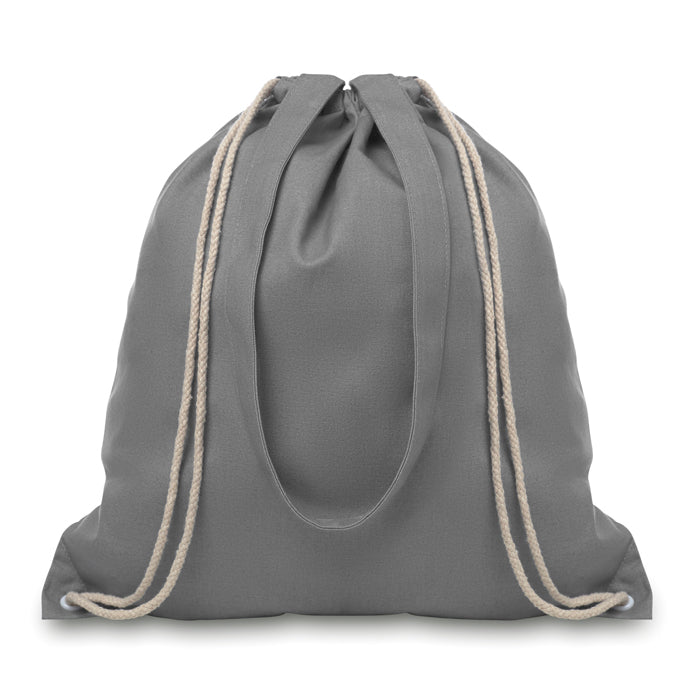 Bolsa de mano tipo morral fabricado de lona de algodón con asas largas y cordón, 220 g m². Producido según el estándar OEKO-TEX.