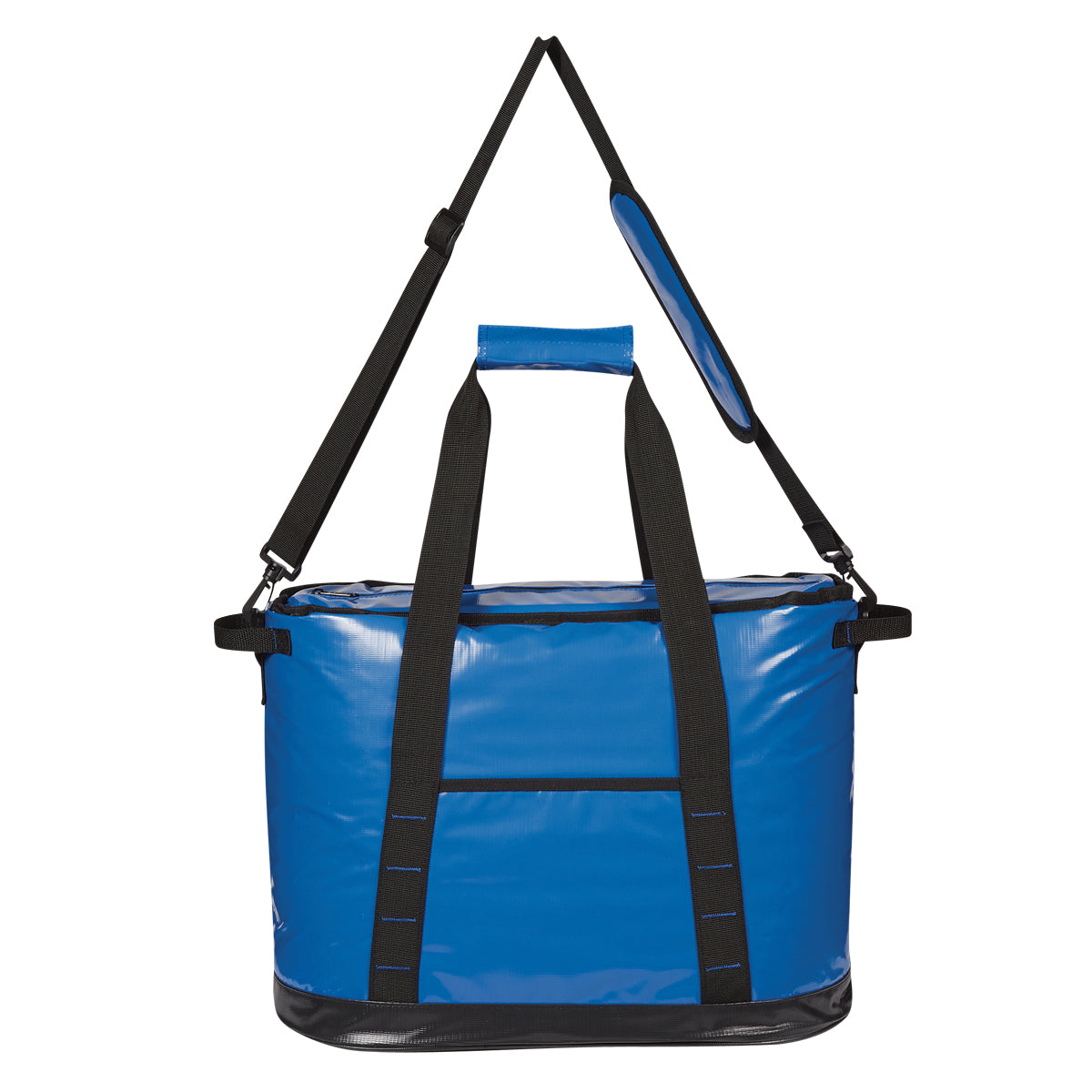 Bolsa hielera fabricada de lona de PVC 45C, con revestimiento de PVC y aislamiento de espuma EPE. Cuenta con correa de hombro desmontable y ajustable, asas de transporte para cómodo agarre con cinta con cierre de gancho y bucle, bolsillo delantero, compartimiento principal con cierre repelente al agua. Es resistente contra el agua, perforaciones, moho y rayos UV. Capacidad de 24 latas.