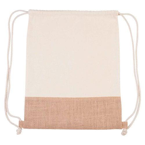 Bolsa-mochila con tirantes de cordón y cerrado de jareta. El yute es un producto natural el cual puede presentar variaciones en tonalidades y en la urdimbre y trama de la tela.. Medidas: 37 x 46 cm . Material: Algodón / Yute