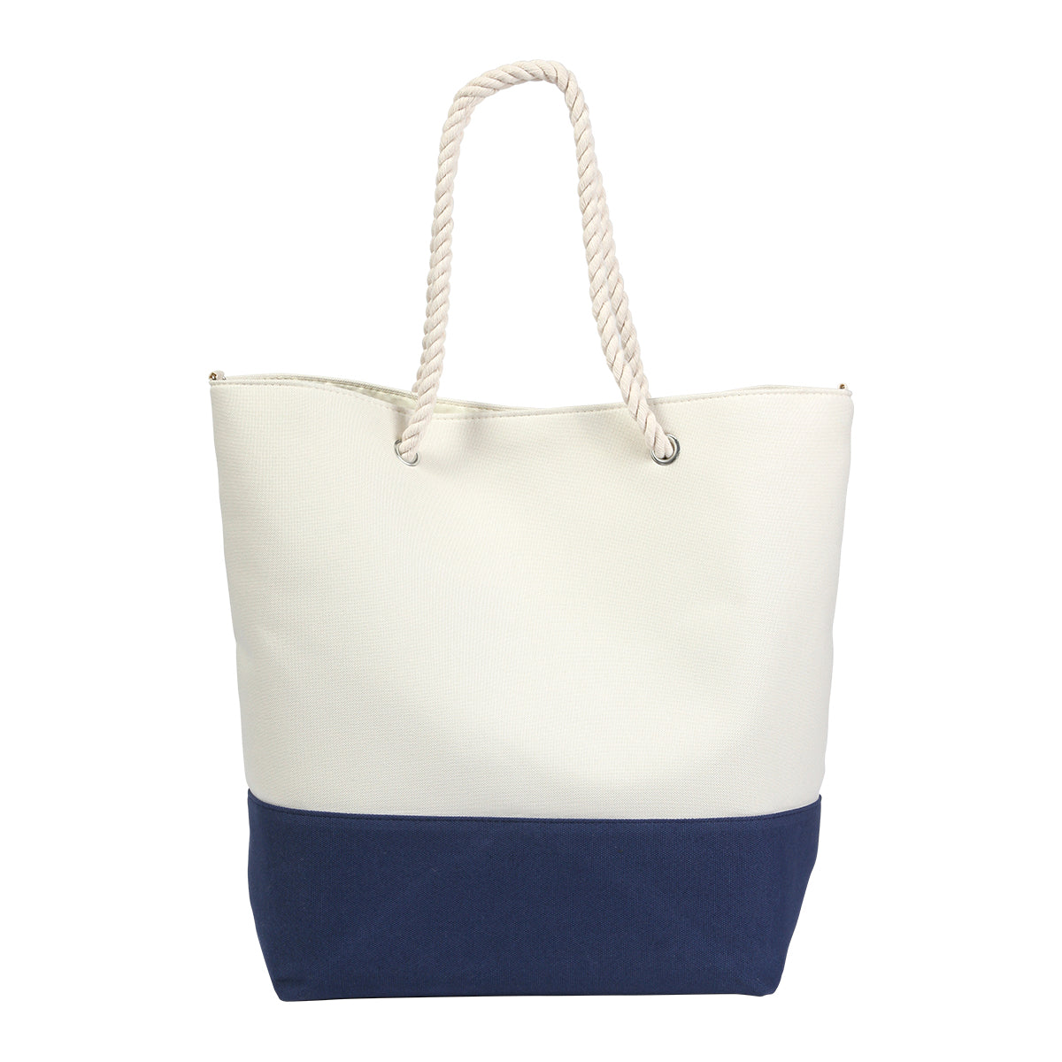 Bolsa de playa fabricada en poliéster y yute con asas tipo jareta es un accesorio imprescindible para tus días de playa y vacaciones. Su resistencia y capacidad de almacenamiento la hacen el accesorio perfecto para tus viajes.