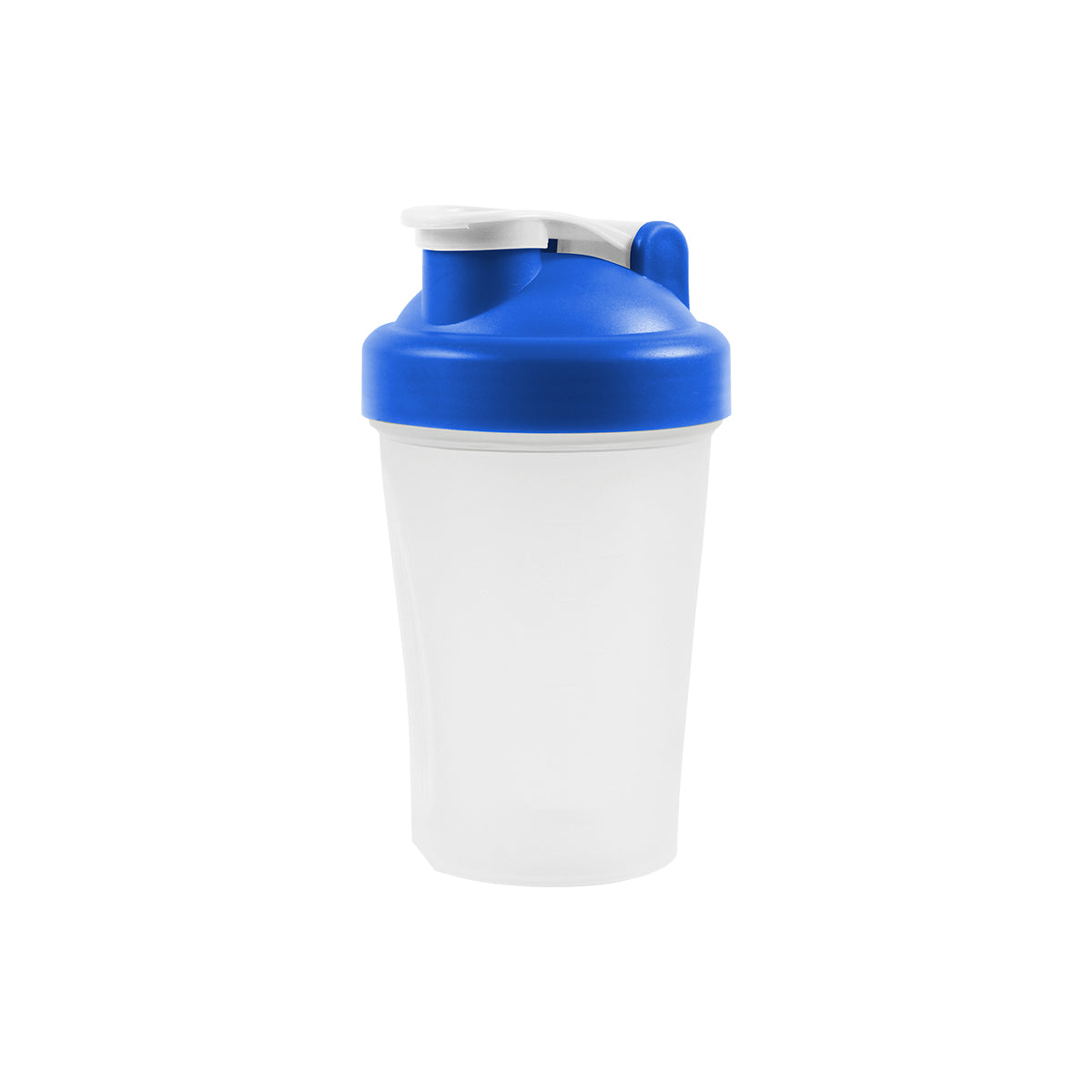 Botella mezcladora de plástico polipropileno con agitador metálico y tapa de rosca en color con orificio para salida de liquido que cuenta con tapa de seguridad. Capacidad de 500 ml 16.5 oz.