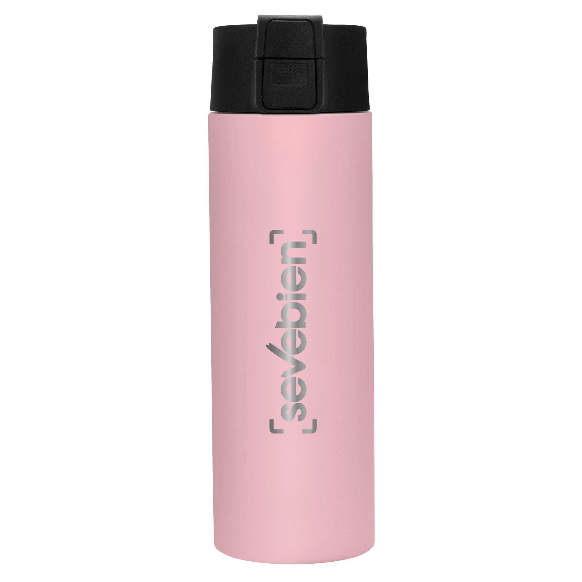 Ø 7 cm x 23 cm. Acero inoxidable. Capacidad 450 ml. Botella doble pared, sellada al vacío. Interior de acero 304 y exterior de acero 201. Pintura acabado mate. Tapa en PP con traba de seguridad y botón pulsador de apertura. Mantiene por más de 12 hs la temperatura de las bebidas calientes y 24 hs de las bebidas frías. Presentación en caja de regalo kraft.. Medidas Ancho: 32.0 . Medidas Alto: 25.5 . Medidas Profundidad: 47.0