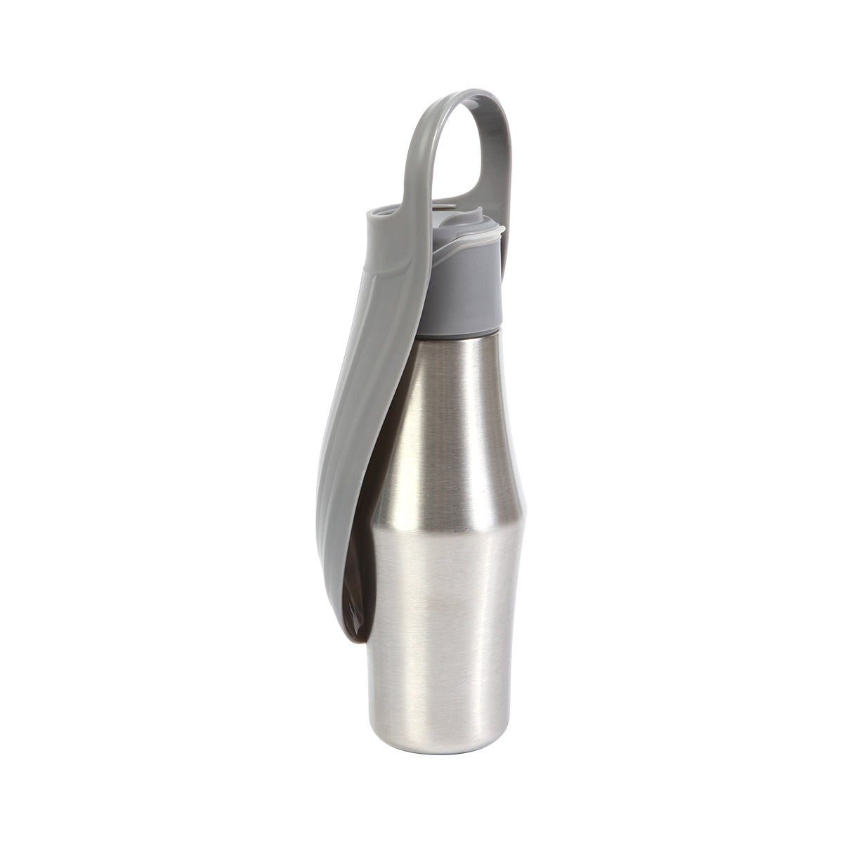 Botella de agua para mascotas fabricada en acero inoxidable y polipropileno. Con asa y diseño ergonómico que te permite transportarla a cualquier parte. Cuenta con un botón de liberación rápida y con un recipiente de agua plegable para que tu mascota tome agua fácilmente. Capacidad de 750 ml, Incluye caja individual.