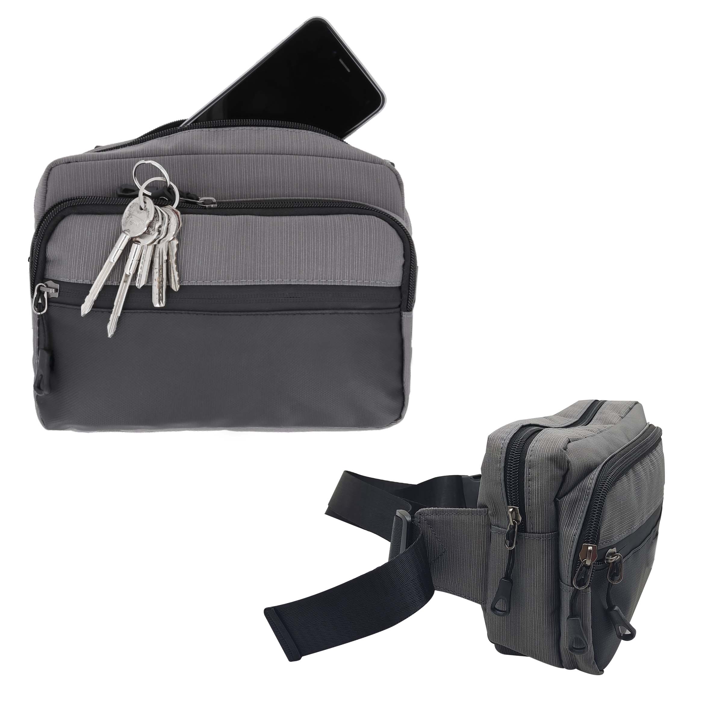 Cangurera con compartimento principal y dos compartimentos frontales.. Medida producto alto: 16.5 . Medida producto ancho: 23.5 . Area impresion: 10 x 4 cm
