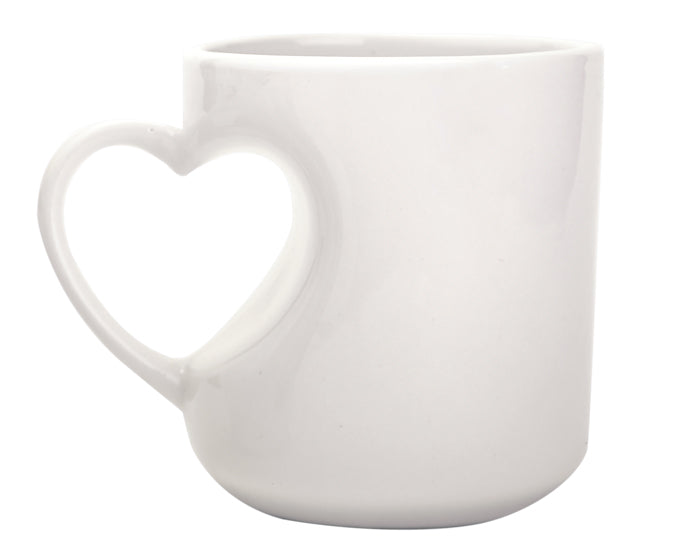 Tarro de sublimación en color blanco con asa en forma de corazón. Acabado brillante. Este producto necesita ser precalentado antes de someterse al proceso de sublimación. CAP. 10 OZ. Temperatura y Tiempo sugeridos para sublimar: 180 grados 160 seg. Venta en múltiplos de 12.
