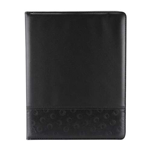 Incluye block de raya tamaño A4 con 20 hojas, compartimento para bolígrafo, documentos y tarjetas. No incluye bolígrafo.. Medidas: 24.4 x 31.6 cm . Material: Curpiel