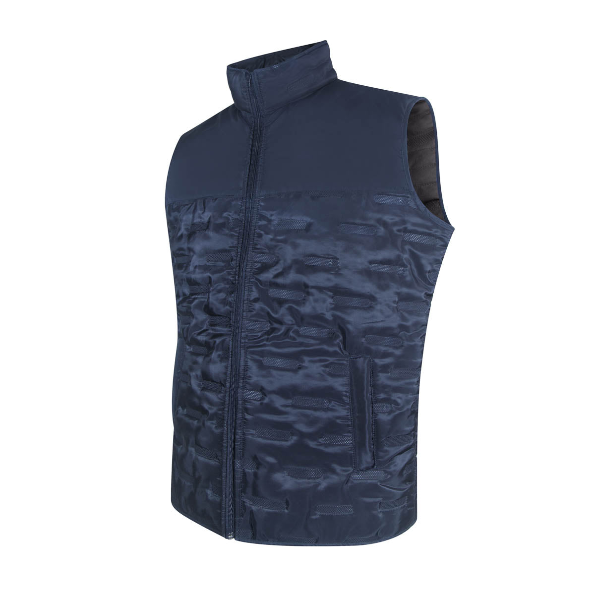 Chaleco con doble bolsa frontal y doble bolsillo interior de cada lado. Combina un diseño moderno con una textura capitonada, que no solo aporta un atractivo visual, sino también una mayor calidez y comodidad. Exterior e interior 100 poliéster.. Material: Poliéster