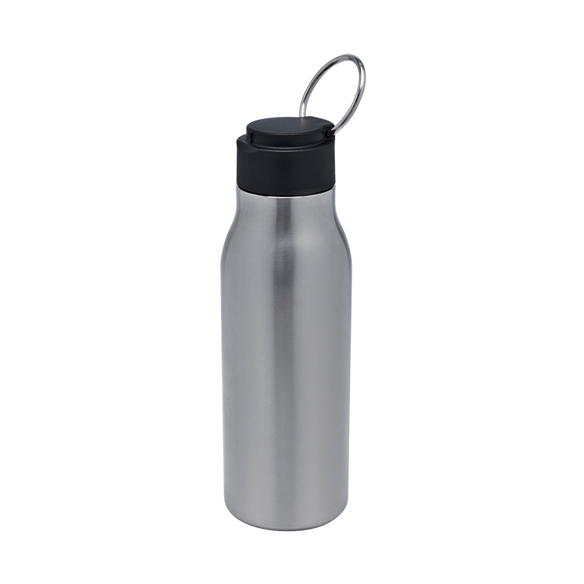 Cilindro metálico de una pared y tapa de plástico con cierre de rosca. Incluye aro metálico en la tapa que funciona como asa. Terminado mate. Incluye caja individual.. Medidas: 6.5 x 21 cm . Material: Acero Inoxidable / Plástico