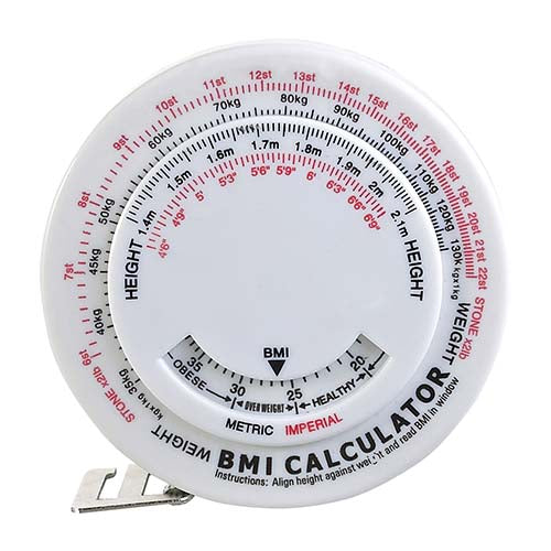Cinta medidora de masa corporal de 150 cm de longitud.. Medidas: 7.2 cm Diámetro . Material: Plástico