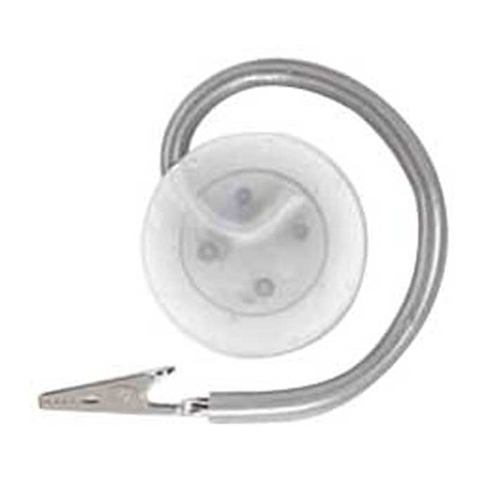 Clip portanotas para computadora con forma de espiral, ventosa fabricada de plástico en un extremo, alambre cubierto de plástico y caimán de metal al otro extremo. Ventosa disponible en colores: blanco, plata, rojo y verde.