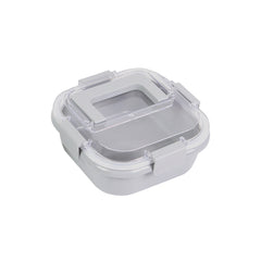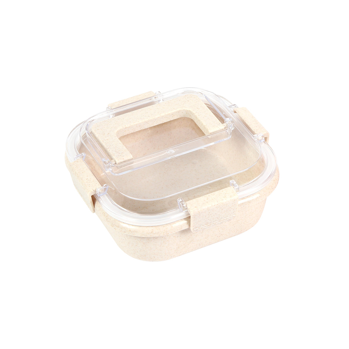 Contenedor de alimentos fabricado en polipropileno PP y fibra de trigo, con tapa fabricada en poliestireno PS y broches de seguridad.