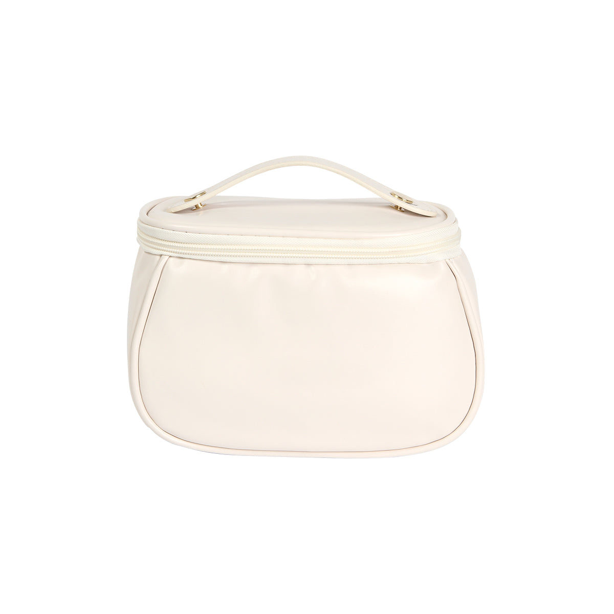 Bolsa cosmetiquera fabricada en cuero sintético PU y PVC, con forro elaborado en Nailon, detalle metálico en cierre, contiene 6 compartimentos en el interior para cosméticos y bolsillos internos para brochas con protección para no manchar la parte interna.