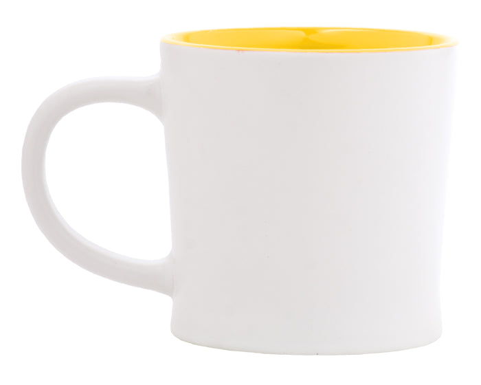 Tarro de cerámica bicolor con asa. Textura interior de ondas. CAP. 11 OZ. Venta en múltiplos de 12.