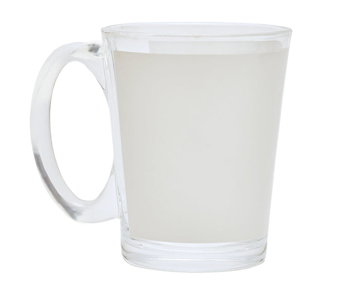 Taza de vidrio con ventana en color blanco para sublimación. CAP. 10 OZ. Temperatura y Tiempo sugeridos para sublimar: 210 grados 210 seg. Venta en múltiplos de 12.