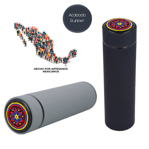 Termo de acero inoxidable con doble pared aislada al vacío e infusor metálico, con técnica huichol en chaquira. Cada pieza está elaborada a mano con 800 chaquiras colocadas una a una por artesanos de Jalisco. Con cada compra apoyas el trabajo que representa el sustento económico de estas familias artesanas.. Medida producto alto: 22.5 . Medida producto ancho: 6.5 . Area impresion: 7 x 9 cm