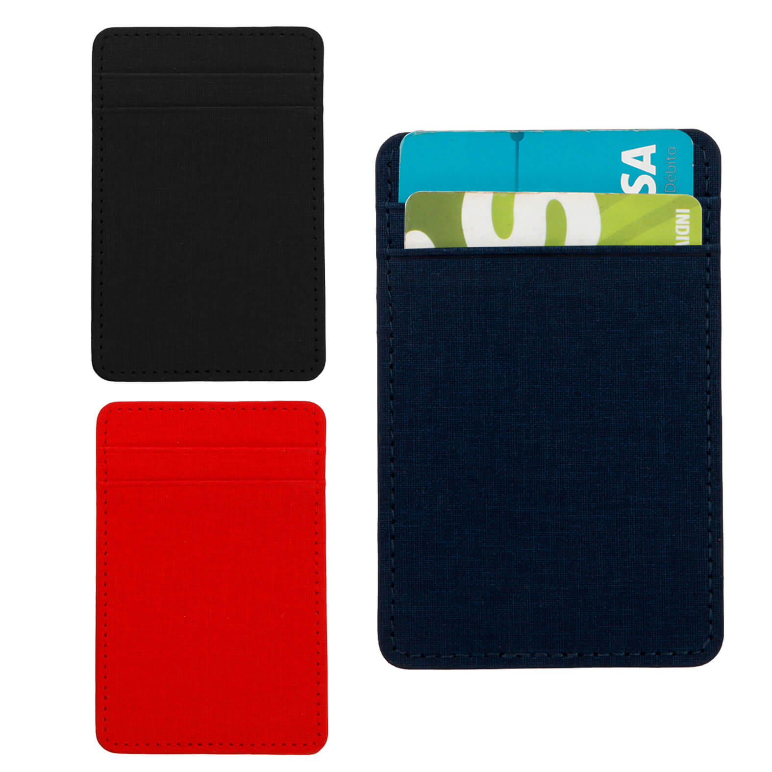 Cartera de poliuretano vertical con 2 compartimentos para tarjeta, se pega al celular.. Medida producto alto: 10.3 . Medida producto ancho: 6.5 . Area impresion: 4 x 4 cm