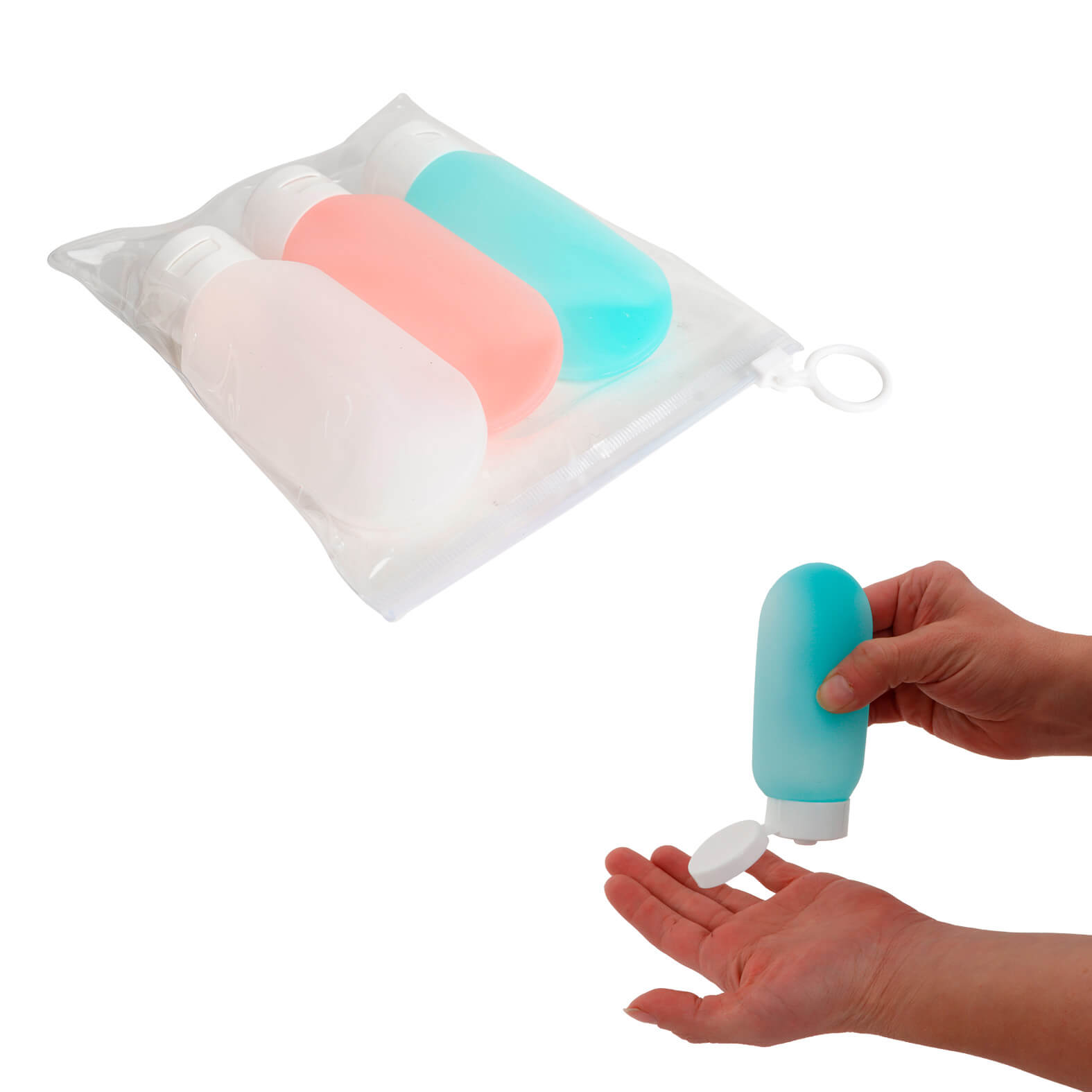 Set de viaje con 3 recipientes para almacenamiento. Incluye estuche.. Medida producto alto: 16.5 . Medida producto ancho: 15 . Area impresion: 10 x 8 cm