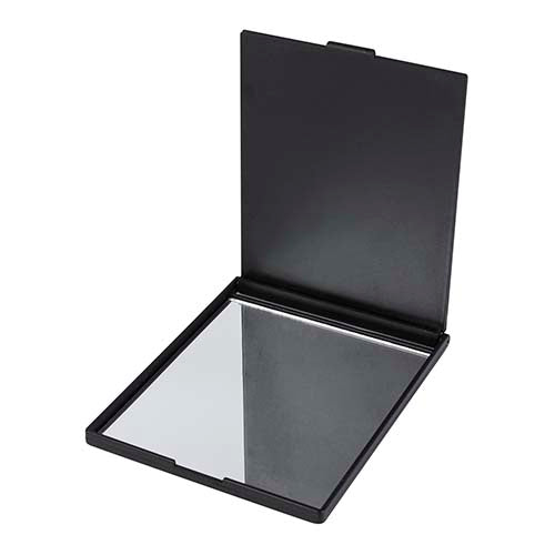 Espejo rectangular de bolsillo. La tapa sirve como base.. Medidas: 9 x 11.5 cm . Material: Plástico