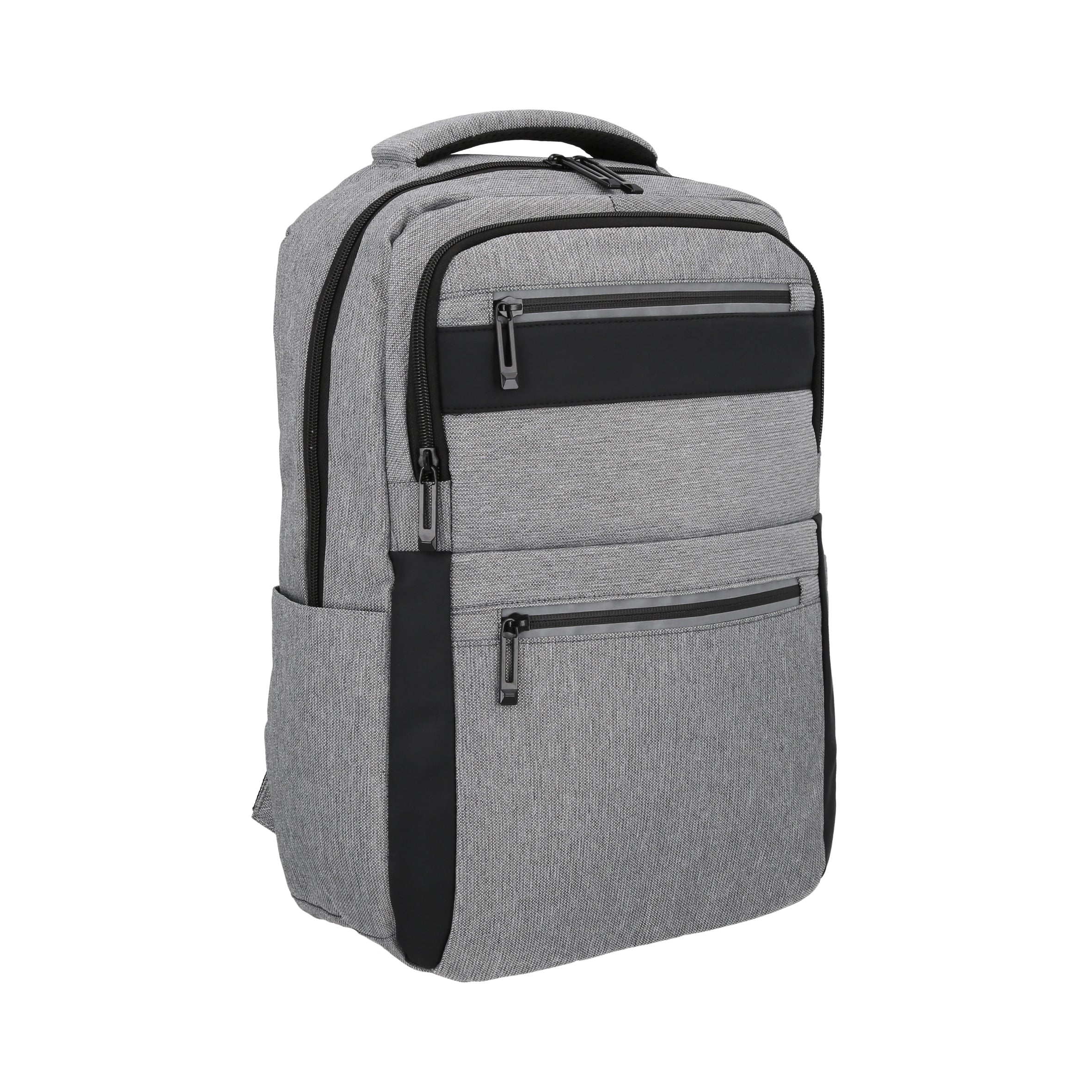 Mochila con 1 compartimento principal, porta laptop de 16, 2 bolsas laterales, 3 bolsas frontales, asa y puerto de carga USB.