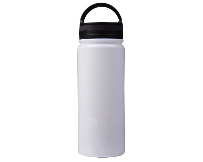 Termo de acero inoxidable con doble pared para sublimación insulado al alto vacío que permite mantener las bebidas calientes por 12 horas y frías por 24 horas, tapa plástica con cierre de rosca y asa. CAP. 600 ml. Presentación: caja en color blanco. Temperatura y Tiempo sugeridos para sublimar: 195 grados 45 seg.