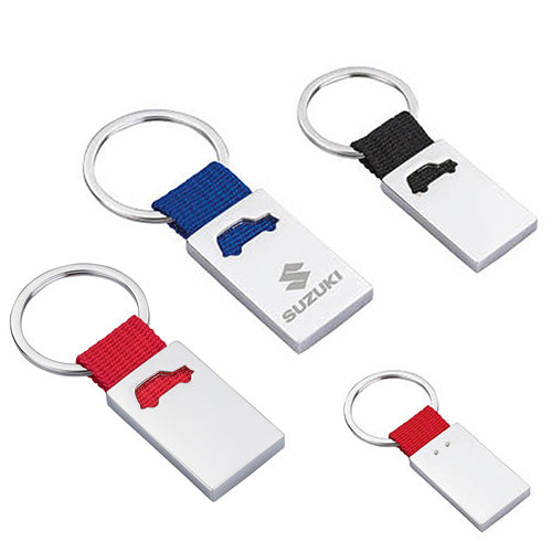 Llavero metálico con figura de auto y arillo reforzado.. Medida producto alto: 7.9 . Medida producto ancho: 2.4 . Area impresion: 2 x 2 cm