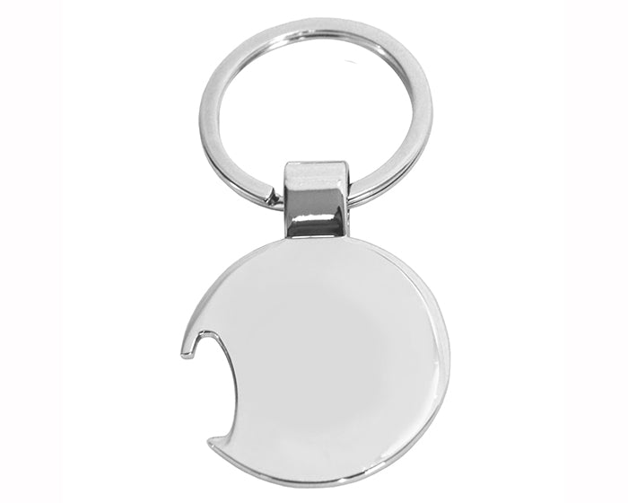 Llavero metálico con esmalte en forma de balón, con arillo reforzado y destapador.