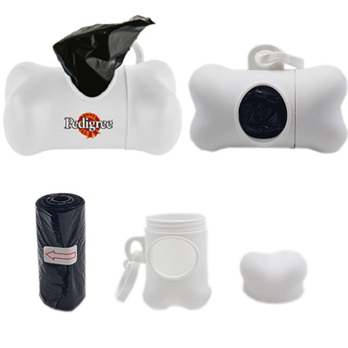 Dispensador de bolsas de plástico con gancho. Incluye 20 bolsas.. Medida producto alto: 3.8 . Medida producto ancho: 10 . Area impresion: 2.5 x 2 cm