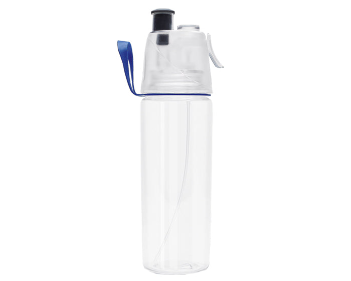 Cilindro de plástico transparente con botón atomizador, el cual permite refrescarse con un fino rociado del líquido. Cuenta con válvula de presión y sellado hermético. Incluye una práctica asa en color para sujetarlo y transportarlo fácilmente. CAP. 600 ml. Presentación: caja en color blanco. Si no hay existencias del color que requieres, puedes adquirir el cilindro transparente y comprar por separado las asas anillos del color deseado. Tenemos stock adicional de asas en colores rojo, verde claro, azul y gris.