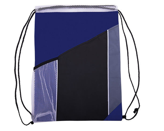 Morral con jareta, compartimento exterior y bolsa lateral de malla.