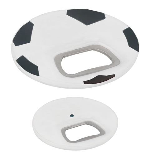 Destapador con imán con diseño de balón de soccer.. Medida producto ancho: 6.7 . Area impresion: 3 x 2.5 cm