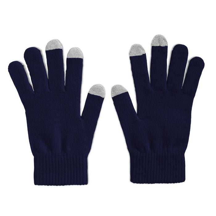 Guantes táctiles para teléfono fabricados de acrílico. Las 3 extremidades táctiles de los dedos están fabricadas de 0.5 en fibra de acero inoxidable, 89.5 en acrílico, 10 en spandex.