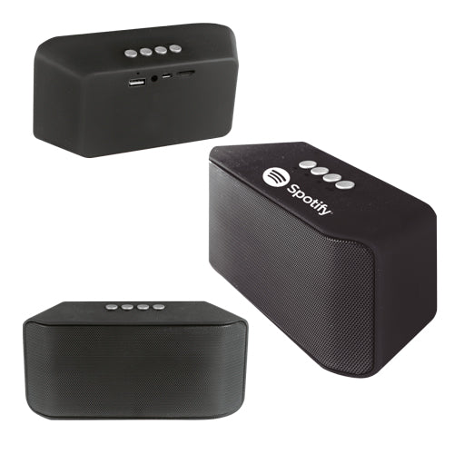Bocina portátil bluetooth en acabado rubber, micro SD, USB, auxiliar y radio. Incluye cable de carga y auxiliar. Batería recargable con duración de 4 hrs.. Medida producto alto: 8 . Medida producto ancho: 16.5 . Area impresion: 12 x 1.5 cm