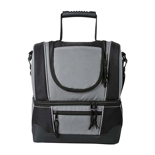 Interior plastificado impermeable. Bolsa principal, red interna para separar, bolsa frontal con cierre, bolsa lateral de red y correa ajustable. Capacidad para 12 latas.. Medidas: 26.5 x 32 x 20 cm . Material: Poliéster