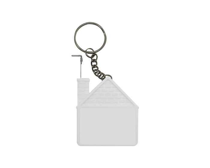 Llavero de plástico en forma de casa con flexómetro de 1 m. de longitud.