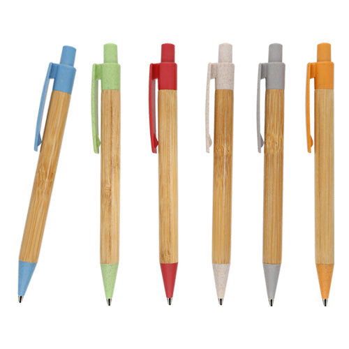 Bolígrafo de bambú con clip y punta de wheat straw fibra de trigo con mecanismo de click.. Medida producto alto: 14 . Medida producto ancho: 1 . Area impresion: 0.9 x 4 cm